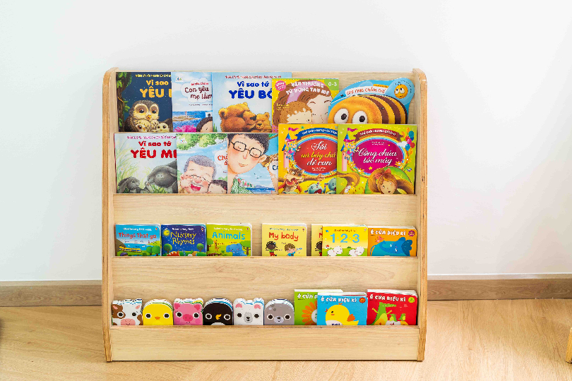 • Thư viện sách ảnh với hơn 100 đầu sách cho các con đọc bất kỳ thời gian nào tuỳ thích, các con được mượn sách về mỗi tuần.